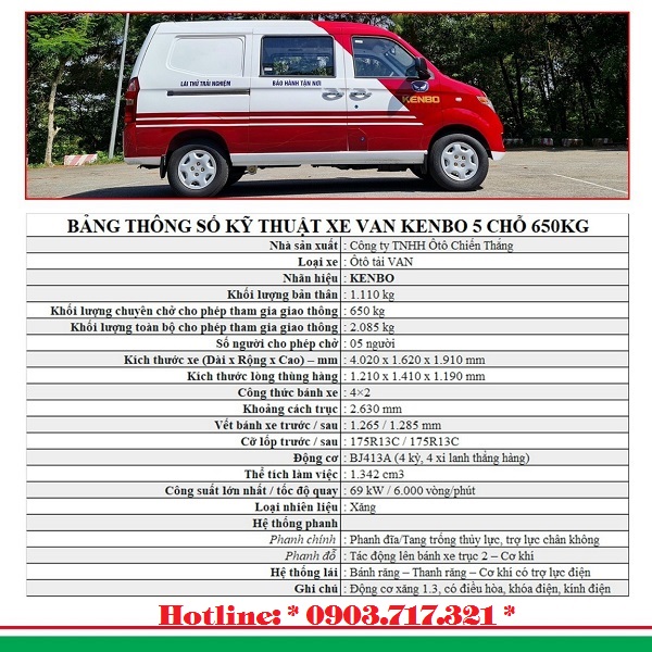 Thông Số Cơ Bản Xe Van KenBo 5 Chỗ 650Kg